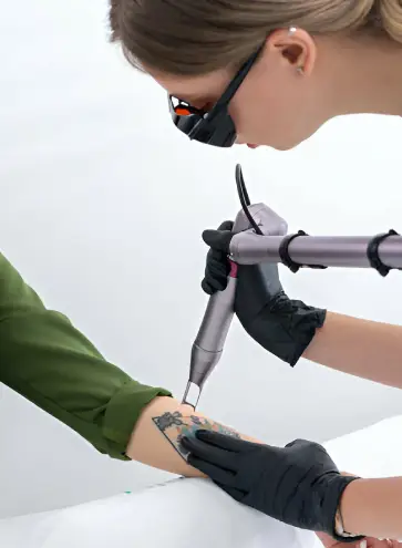 Procedure: Uniform laser pulses are used on tattooed skin so as to uniformly target the ink layers with energy needed for tattoo removal.